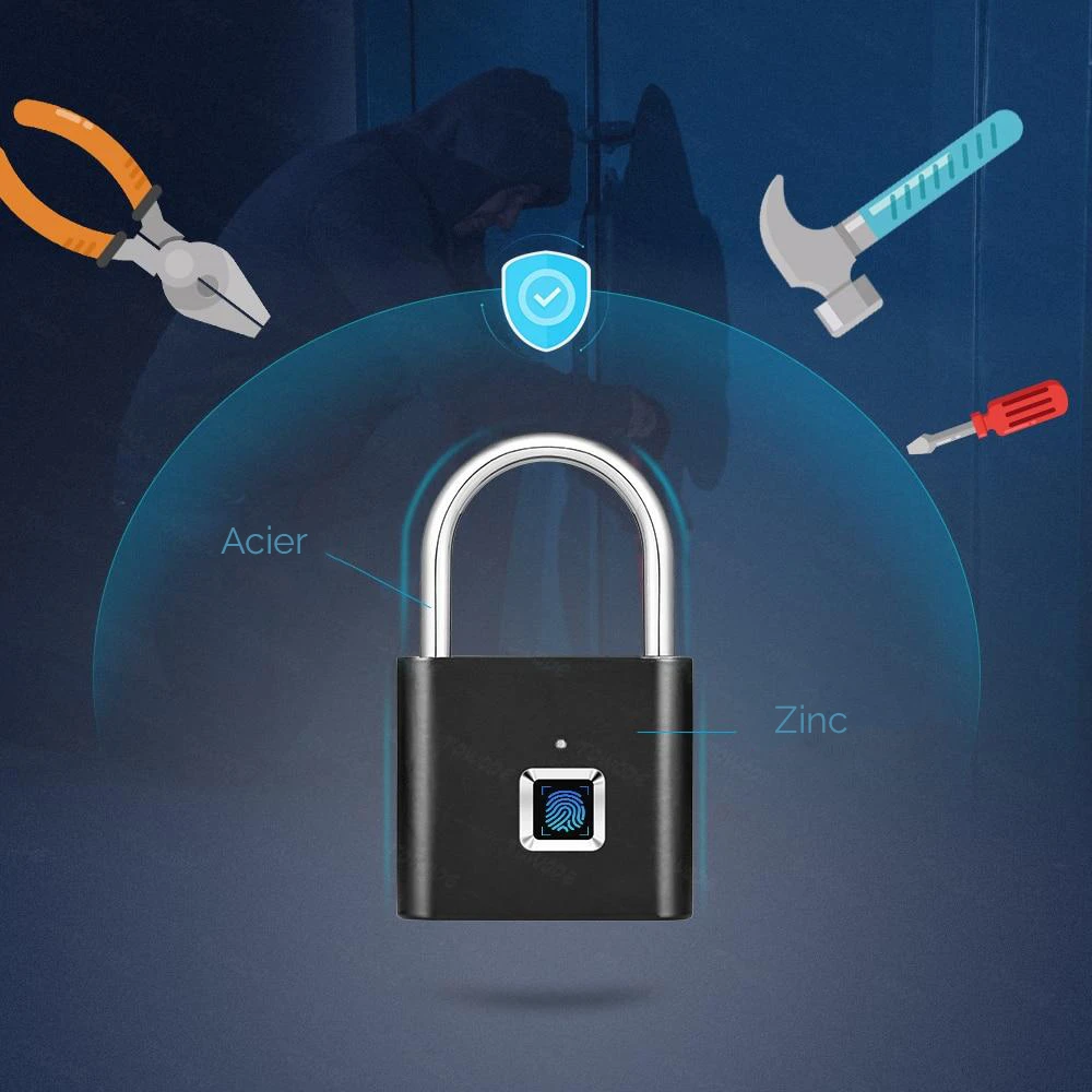 Fini la crainte de perdre ses clés ou d'oublier ses mots de passe, grâce à ce cadenas vous avez juste besoin de votre doigt. Ce cadenas à empreinte digitale est doté d'une batterie avec recharge par USB d'une grande autonomie qui permet jusqu'à 3000 déverrouillages sur une seule charge. Enregistrez jusqu'à 10 empreintes différentes sans avoir besoin de mots de passe, de clés de rechange ou d'applications tierces.