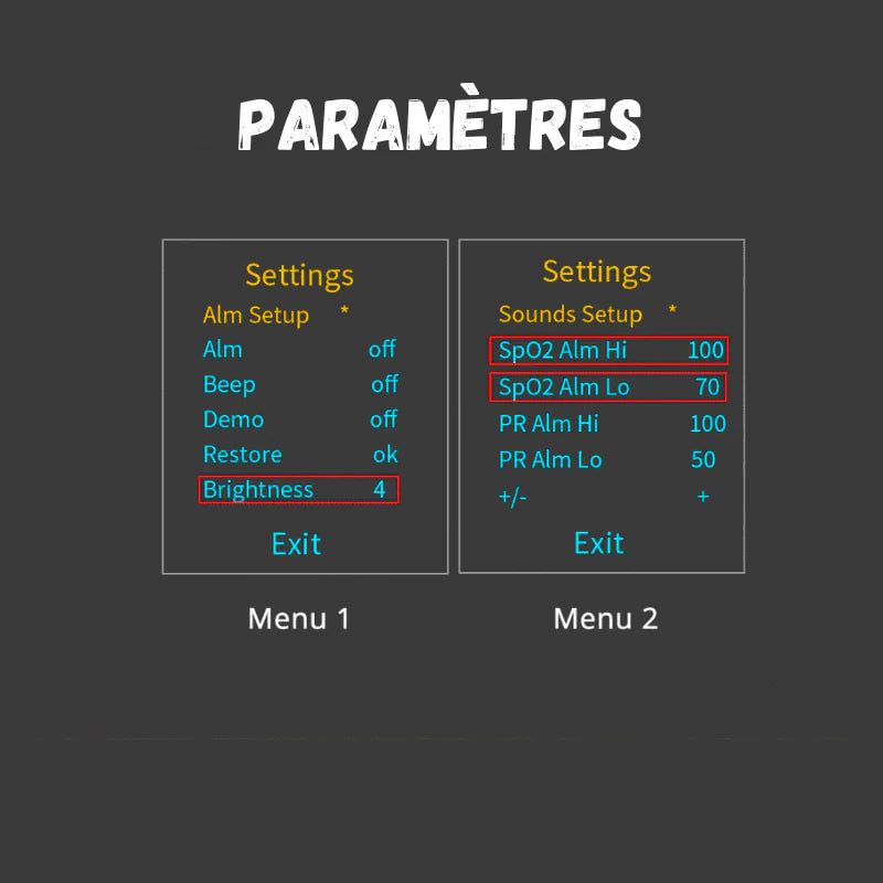 Taux d'oxygène - il est indiqué en pourcentage (SPO2). La norme de saturation O2 se situe entre 95 et 100%. Au-dessous de 95% l’hypoxie (manque d’oxygène) doit être prise en compte. En-dessous de 90%, une action rapide est requise. À noter que la saturation sanguine en oxygène chez un fumeur sera naturellement plus basse que chez un non-fumeur.