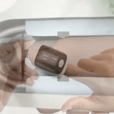 2. Placez l'oxymètre sur une surface plane, mettez votre index droit ou gauche sur le capteur et allumez en appuyant sur l'unique bouton.
