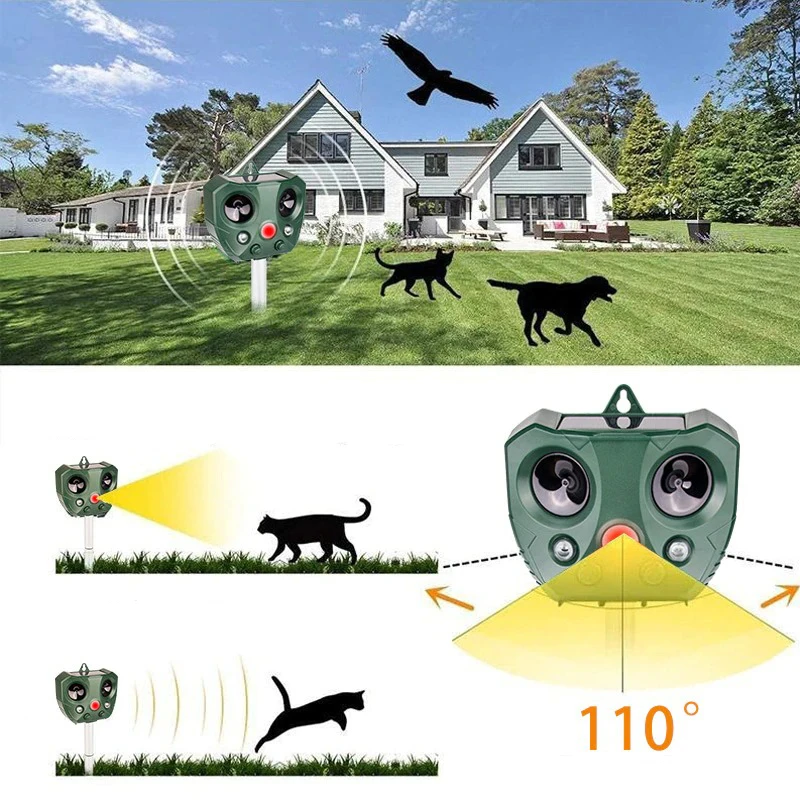 Des animaux viennent dans votre jardin et le saccagent ? Excréments, trous, terriers, fruits picorés, insectes durant vos repas estivaux, vous rêvez d'un jardin sans ces désagréments ? Grâce à la technologie de ce répulsif, il va envoyer des ultrasons repoussant tous types d'animaux : chiens, chats, rongeurs, volatiles, moucherons, chauves souris, renards etc. Retrouvez un jardin où il fait bon vivre !