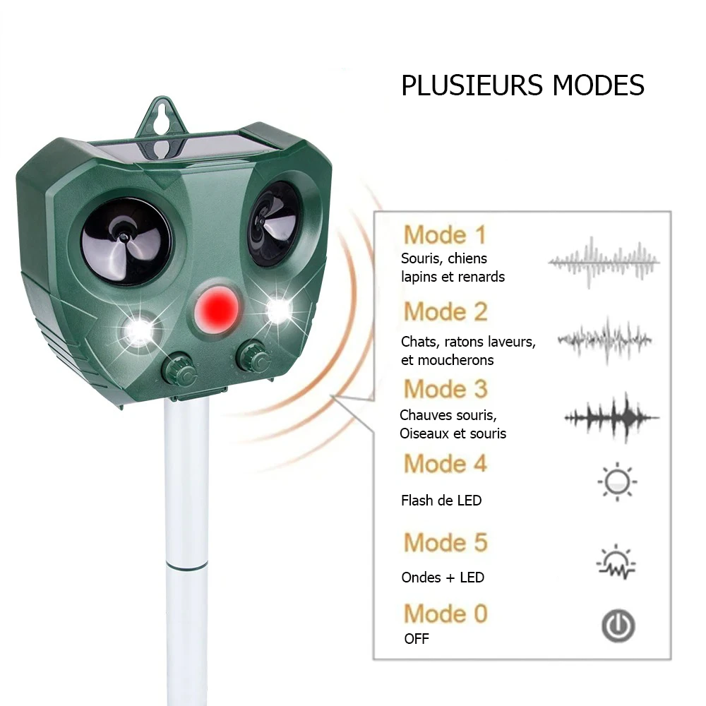 1 X Répulsif ultrasonique à énergie solaire anti nuisibles