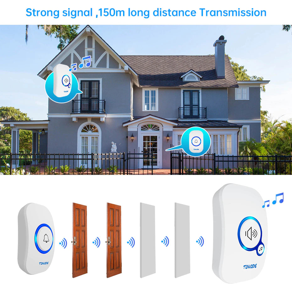 Cette sonnette intelligente sans fil adopte une technologie avancée d'émetteur-récepteur sans fil. Elle convient pour tout type de maison et a une portée de transmission jusqu'à 150 mètres.
