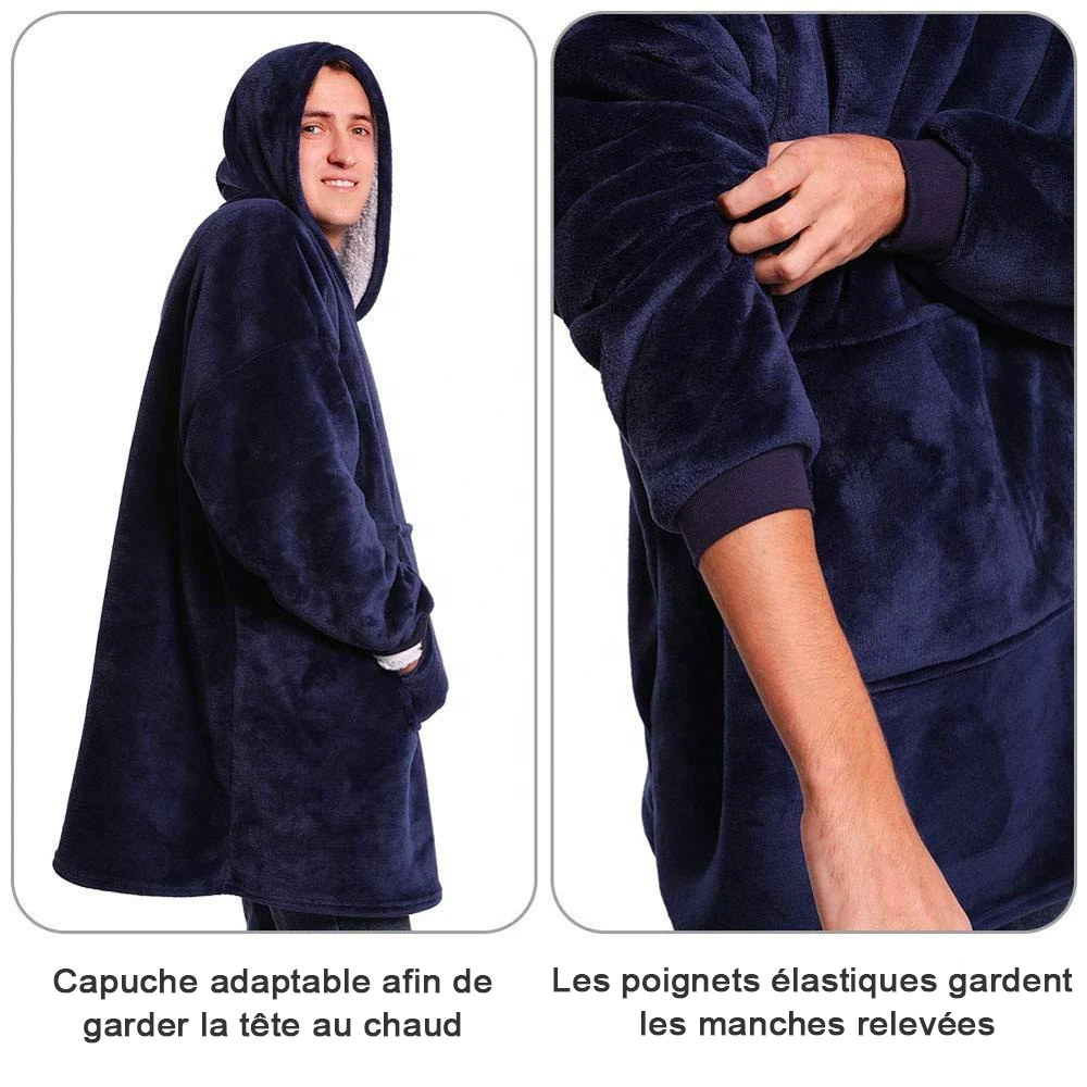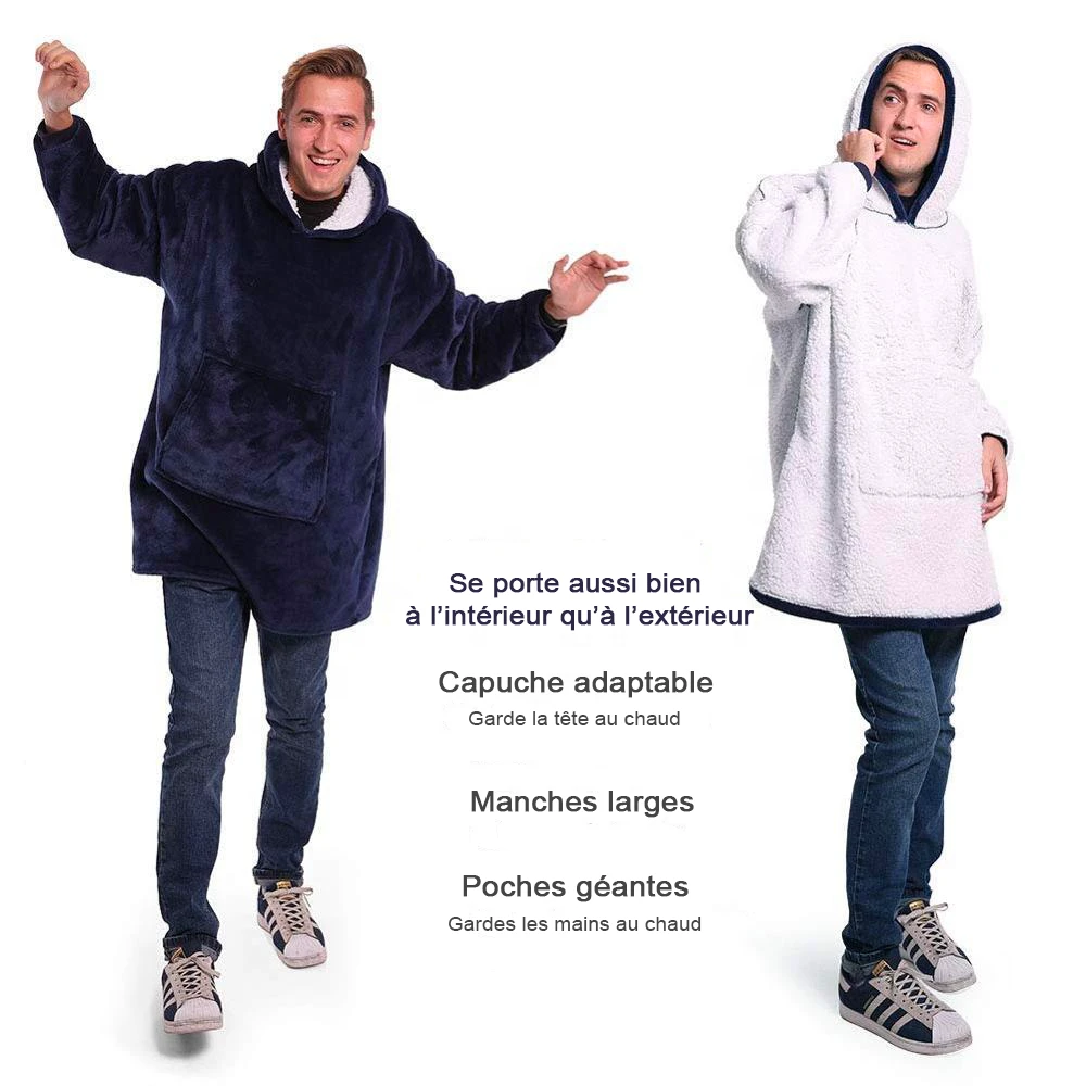 Le Sweat-Plaid vous surprendra avec sa chaleur digne d'une couverture de qualité et le confort d'un sweat surdimensionné. Il vous aidera à surmonter le froid de l'hiver pendant que vous êtes à la maison, regardez la télévision, travaillez sur votre ordinateur portable, assistez à un événement sportif ou à un concert.